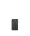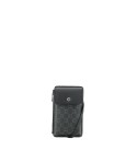 Pochette pour téléphone marron en toile enduite siglée garnie cuir