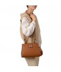 Attila saura vous séduire avec son look structuré et distingué. De sa forme trapèze en cuir de vachette grainé, à son superbe fermoir rotatif, il a tout d'un sac luxueux. Sa anse résistante et sa bandoulière amovible et réglable permet diverses utilisations, afin que vous puissez l'emmener partout. Son large compartiment abrite deux poches intérieures, une zippée et une plate, pour un rangement optimal. Vous trouverez deux boutons pression sur les cotés du sac pour une version plus compacte. Ses finitions argentées et sa doublure en toile monogrammée complètent son aspect raffiné.