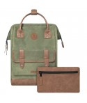 2 pochettes avant à pression sont fournies ( l'une unie, et l'autre couleur cuir assortie aux anses ). Elles se changent et vous permettent ainsi de personnaliser votre sac à dos.