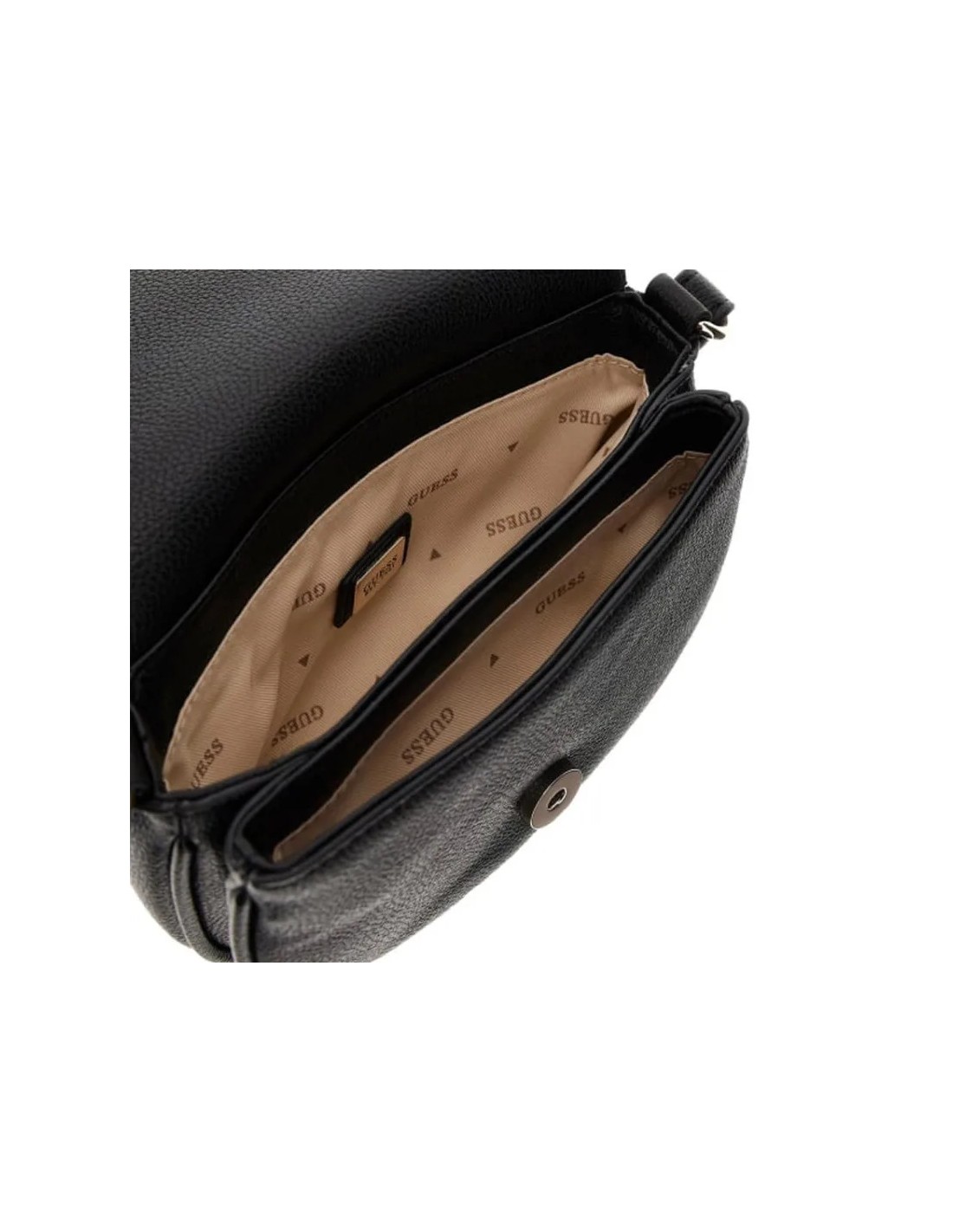 Ce joli sac Guess est fermé par un rabat et une pression. Il possède 2 compartiments dont un avec une poche zippée et un compartiment cartes. Vous le porterez à l'épaule ou en travers grace à sa bandoulière réglable. Enfin, pour vous faciliter la vie, il est également pourvu d'une poche extérieure zippée à l'arrière !