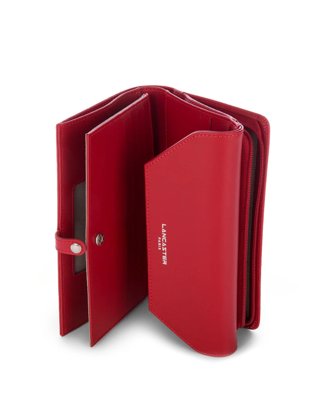 Compagnon Lancaster ligne Smooth. Fermeture à rabat avec pression. Partie monnaie avec fermeture zippée tout autour.